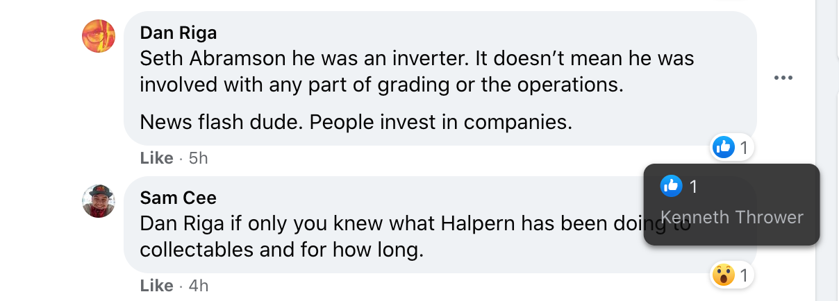 It was during this period that Halperin stopped being a grader and instead, per Forbes, “found a [different] way to exploit the system. In lieu of running his own grading agency, he has invested in them.” {Note: See above regarding the ongoing RETRO inquiry as to whether Halperin has ever invested in WATA.}