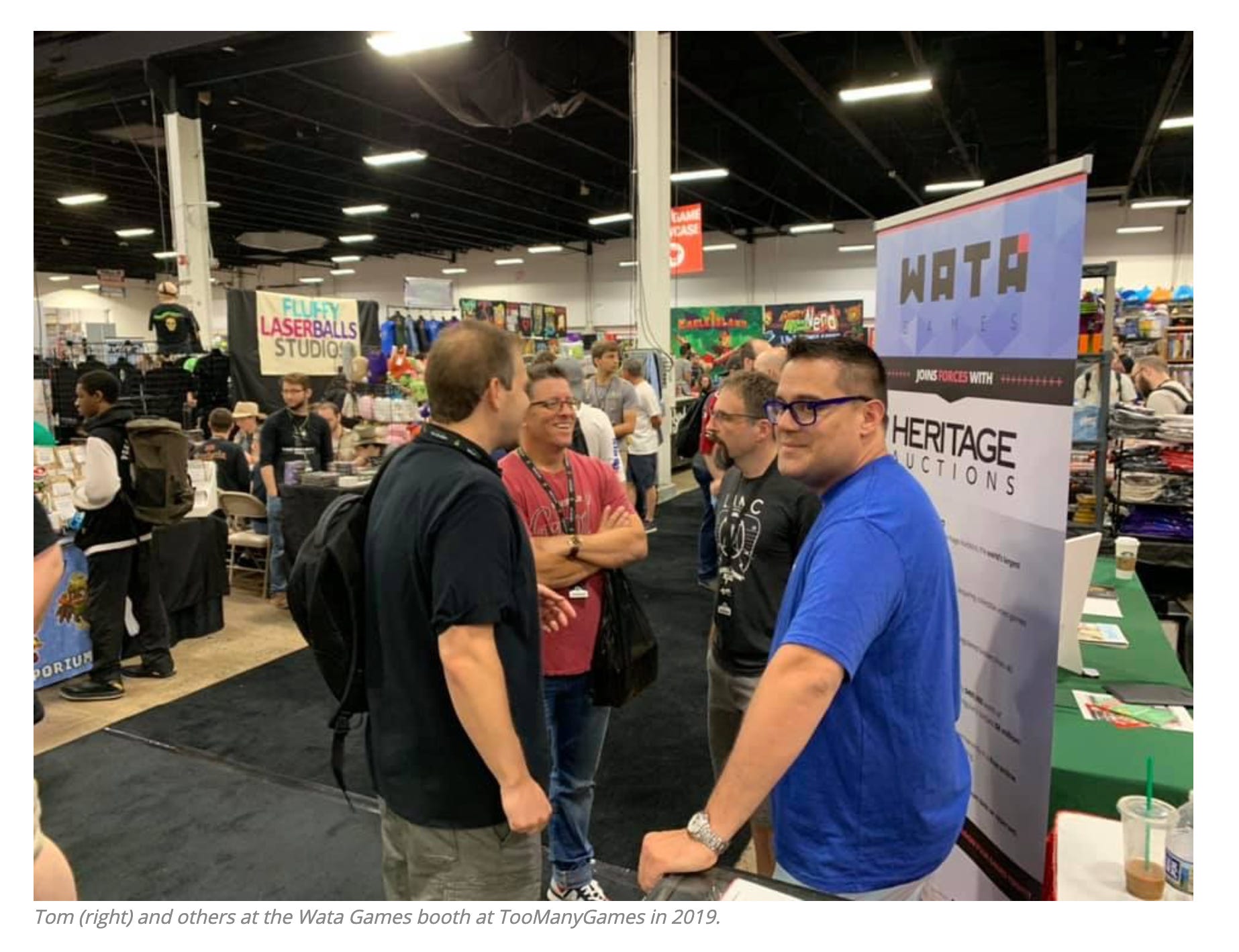 As the photograph above confirms, WATA and Heritage not only are in a partnership, but appear at conventions under one banner (literally). So after a year of Bronty’s game being displayed at conventions and other events by WATA and Kahn, the only effect of the sale of the game on Kahn’s WATA co-founder Lecce and WATA’s adviser Halperin was—well, no effect. The game continued to appear at the same events, and under the same two-company banner as before, according to Halperin.