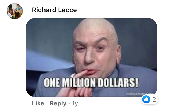 In recommending his appearance on Pawn Stars to his few hundred Facebook friends, Lecce affected something of a less humble mien than viewers of the show saw on-air. Lecce billed the PR stunt to his inner circle using an Austin Powers meme centered on well-known movie villain Dr. Evil (played by Mike Myers in the late 1990s film series):