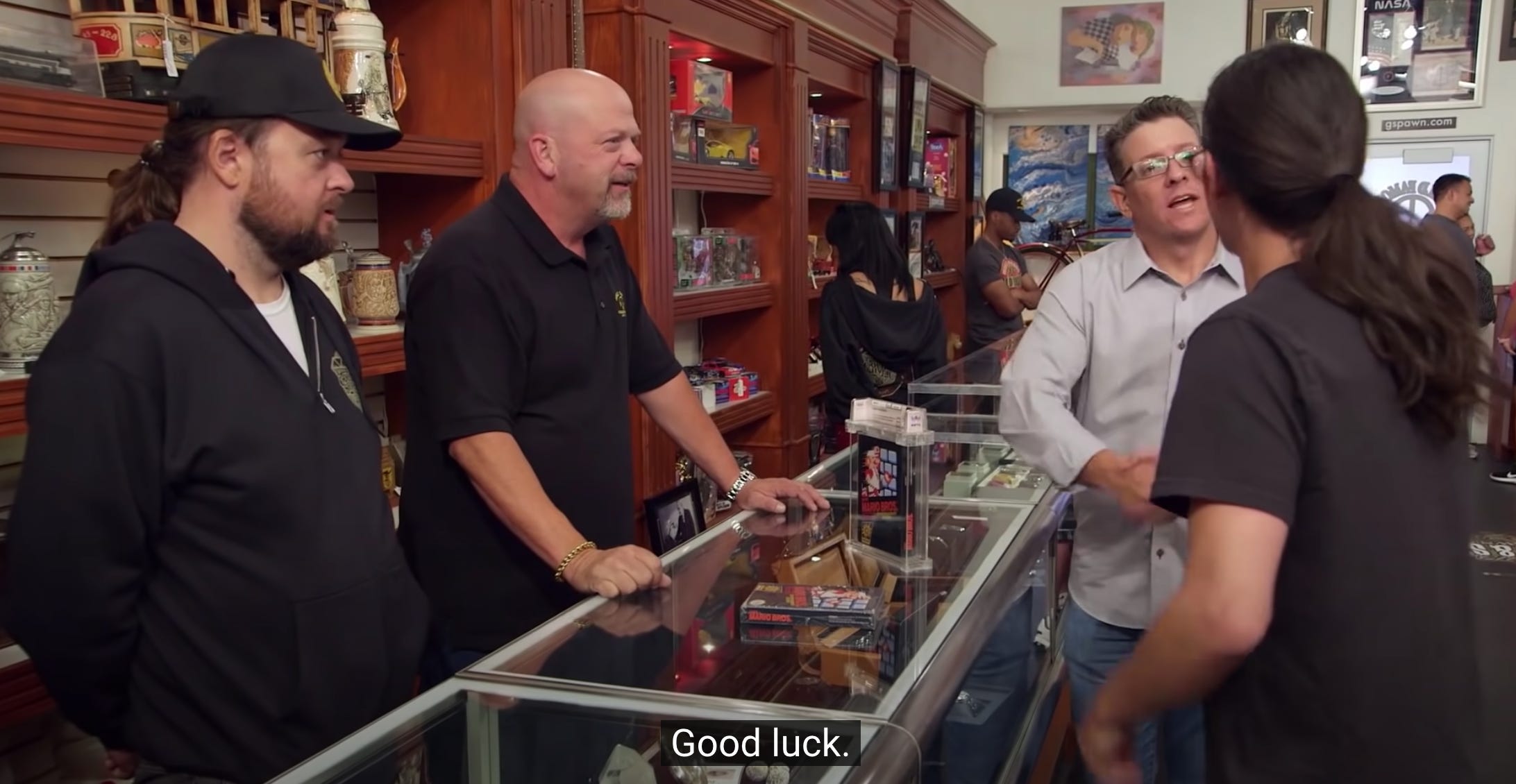 Harrison initially says to Lecce, “From all my research, WATA is the company that grades these. These [WATA-graded games] are the ones you trust.” Harrison’s remark is inexplicable—and false. Given that, by late 2019, VGA had been in operation for well over a decade, and was in fact (as the WATA-affiliated Lecce well knew) the company that had actually first graded Bronty’s game as “near-mint”—an assessment WATA would agree with during its needless re-grade and subtle downward revision of the item’s grading—and given that WATA had been grading games, by November of 2019, for only 18 months, there is no scenario in which Pawn Stars had been told by a neutral party that WATA was the only grading house that could be trusted to grade video games.